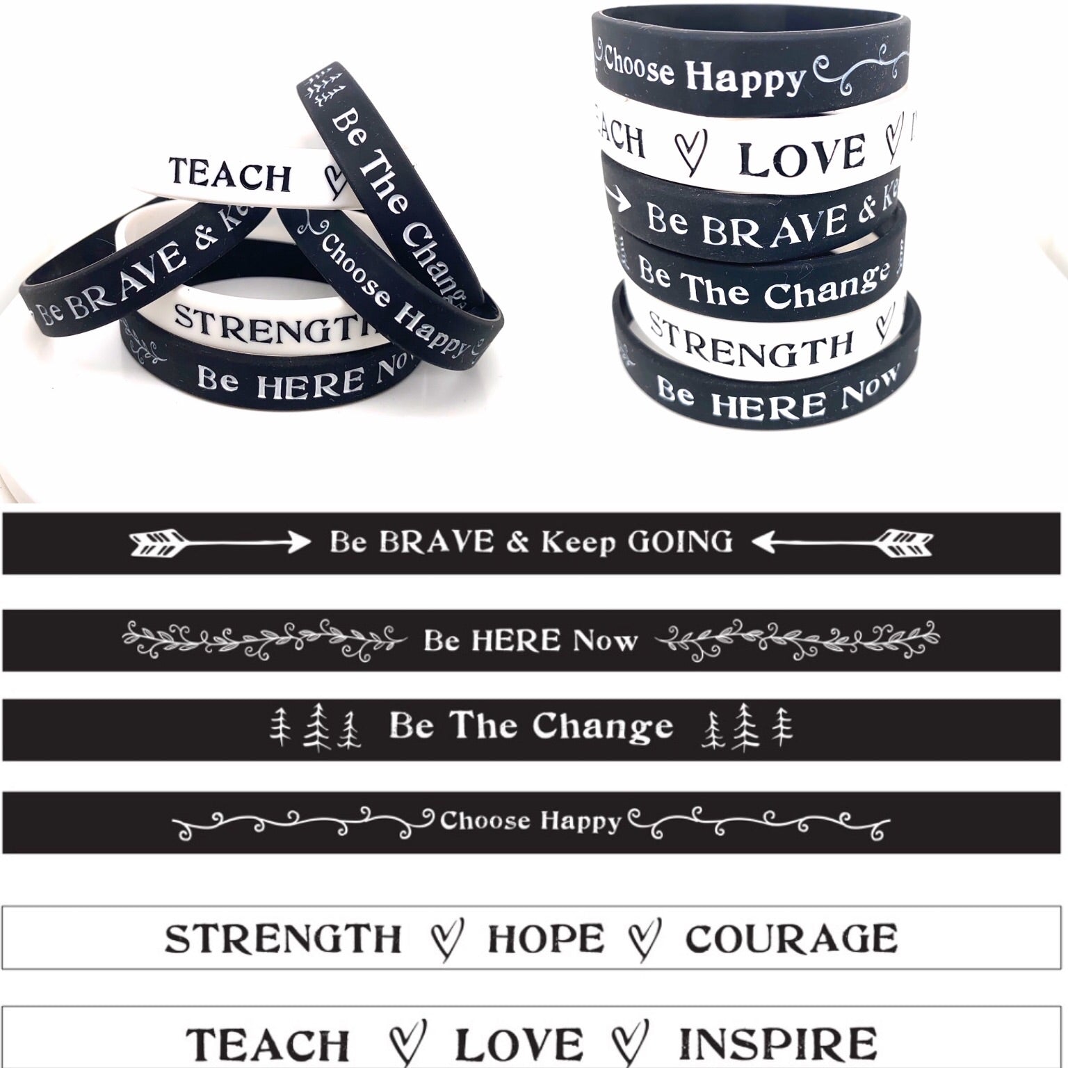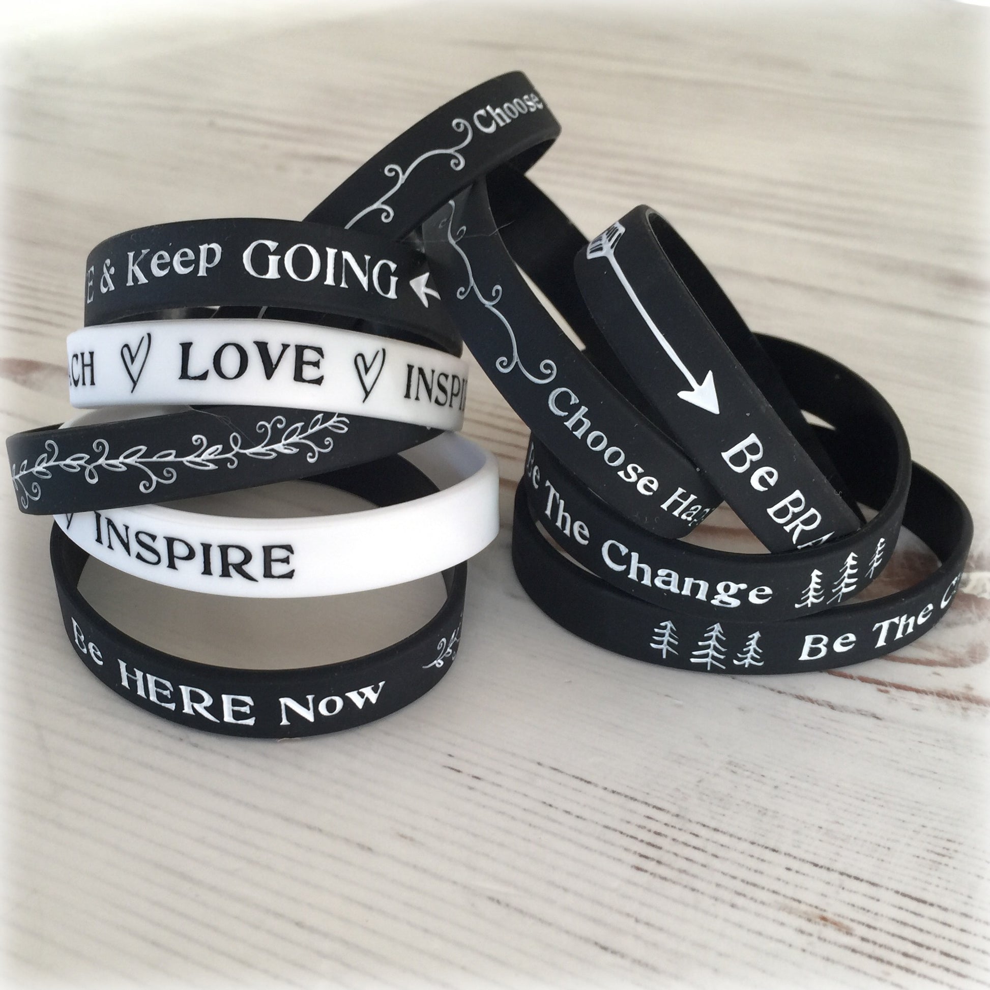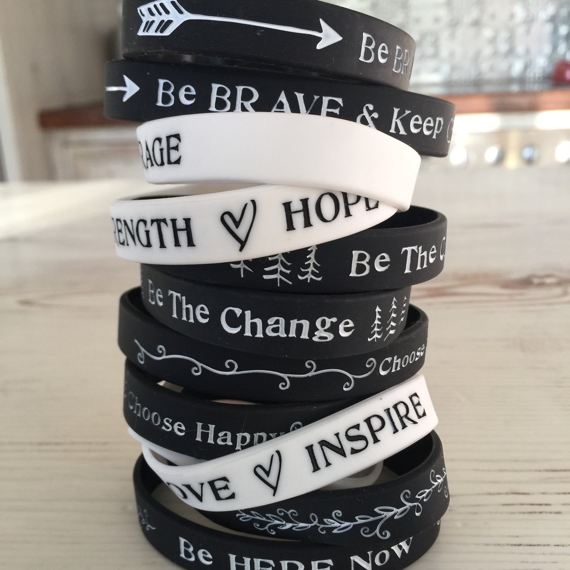 These inspirational accessories are the perfect gift for you, your mom, sister, best friend or anyone who could benefit from glancing down and catching sight of a few words of encouragement throughout the day.