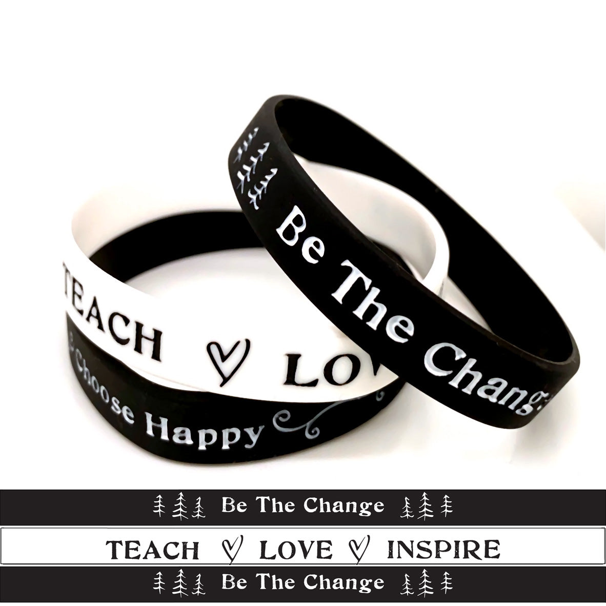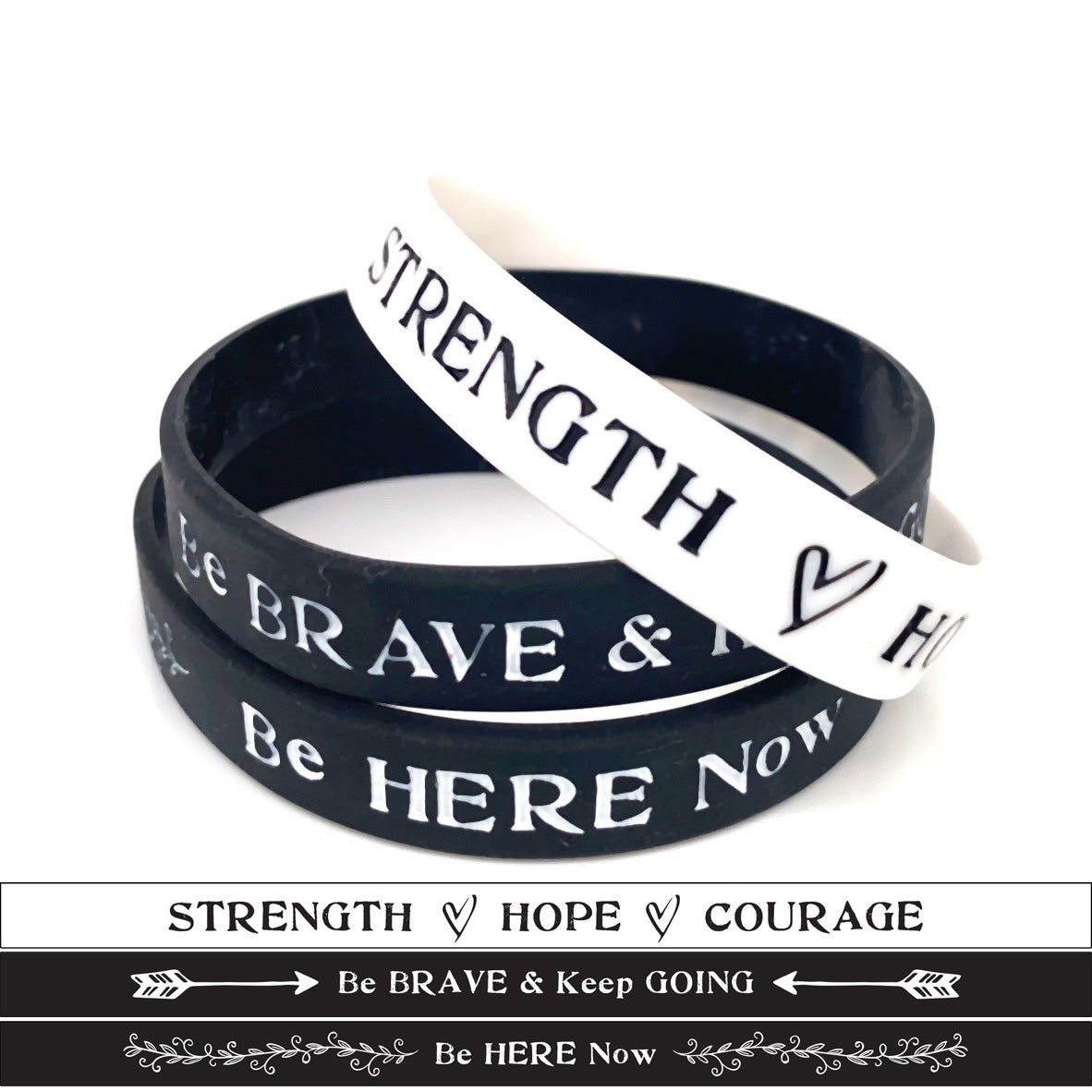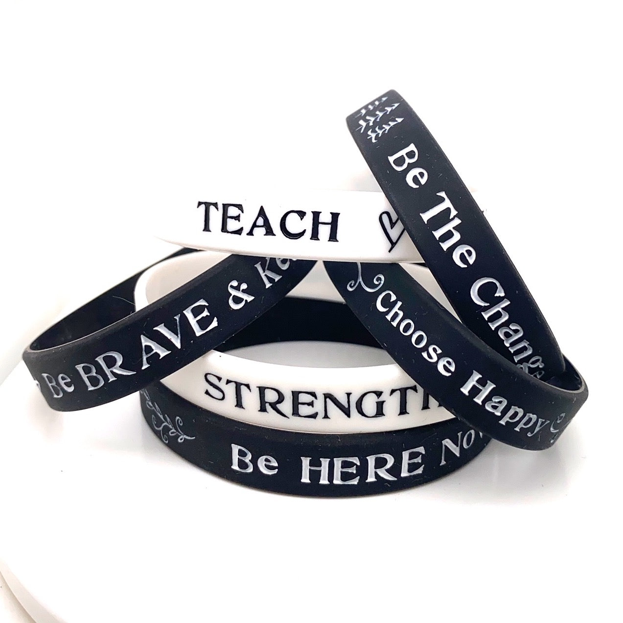 Silicone wristbands are easy to slip on, lightweight, and comfortable to wear all day long. Wear them individually or stack them to make a statement.